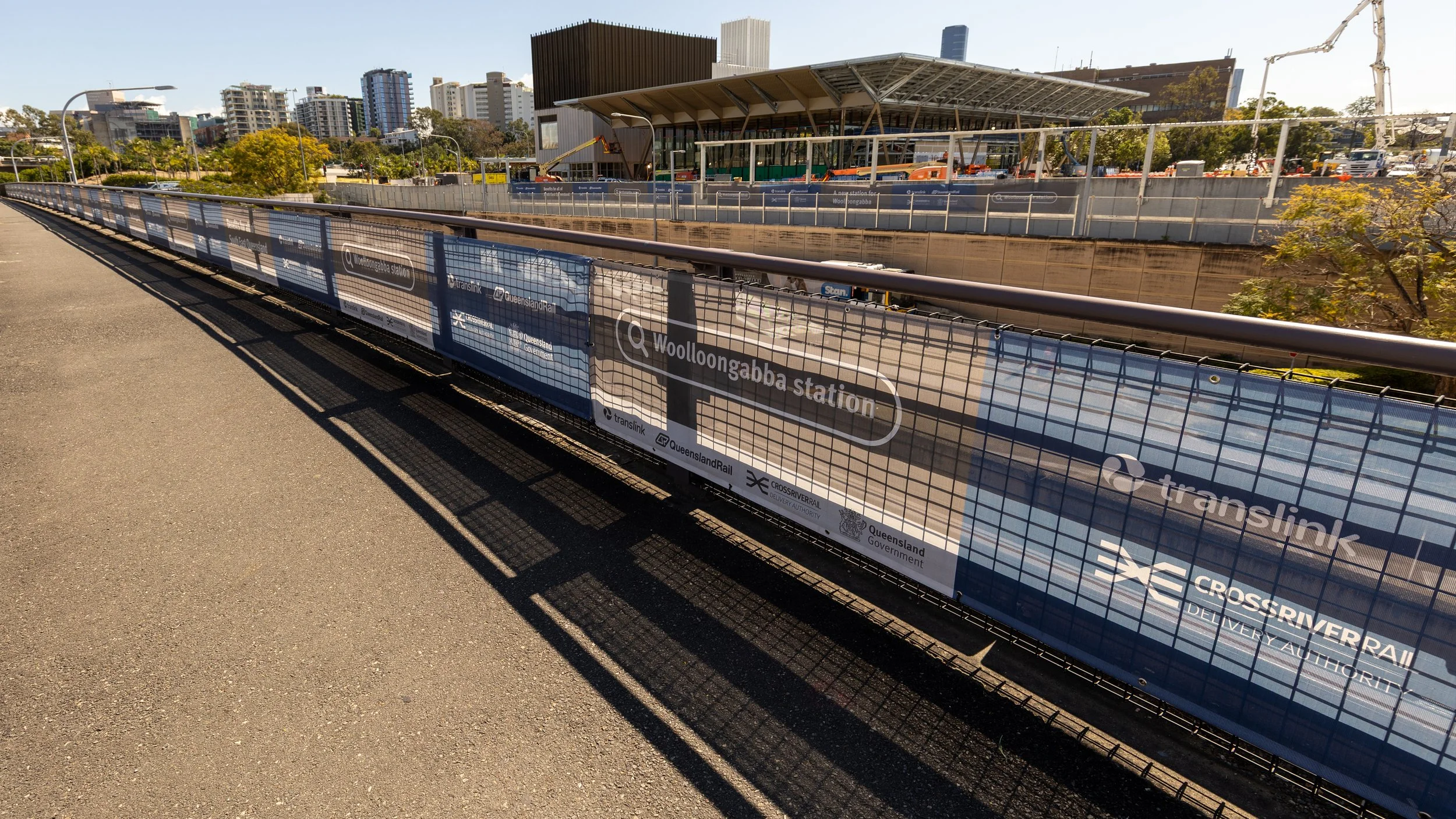 Construction hoarding promoting project social licence located adjacent to the new Woolloongabba station on Stanley Street.