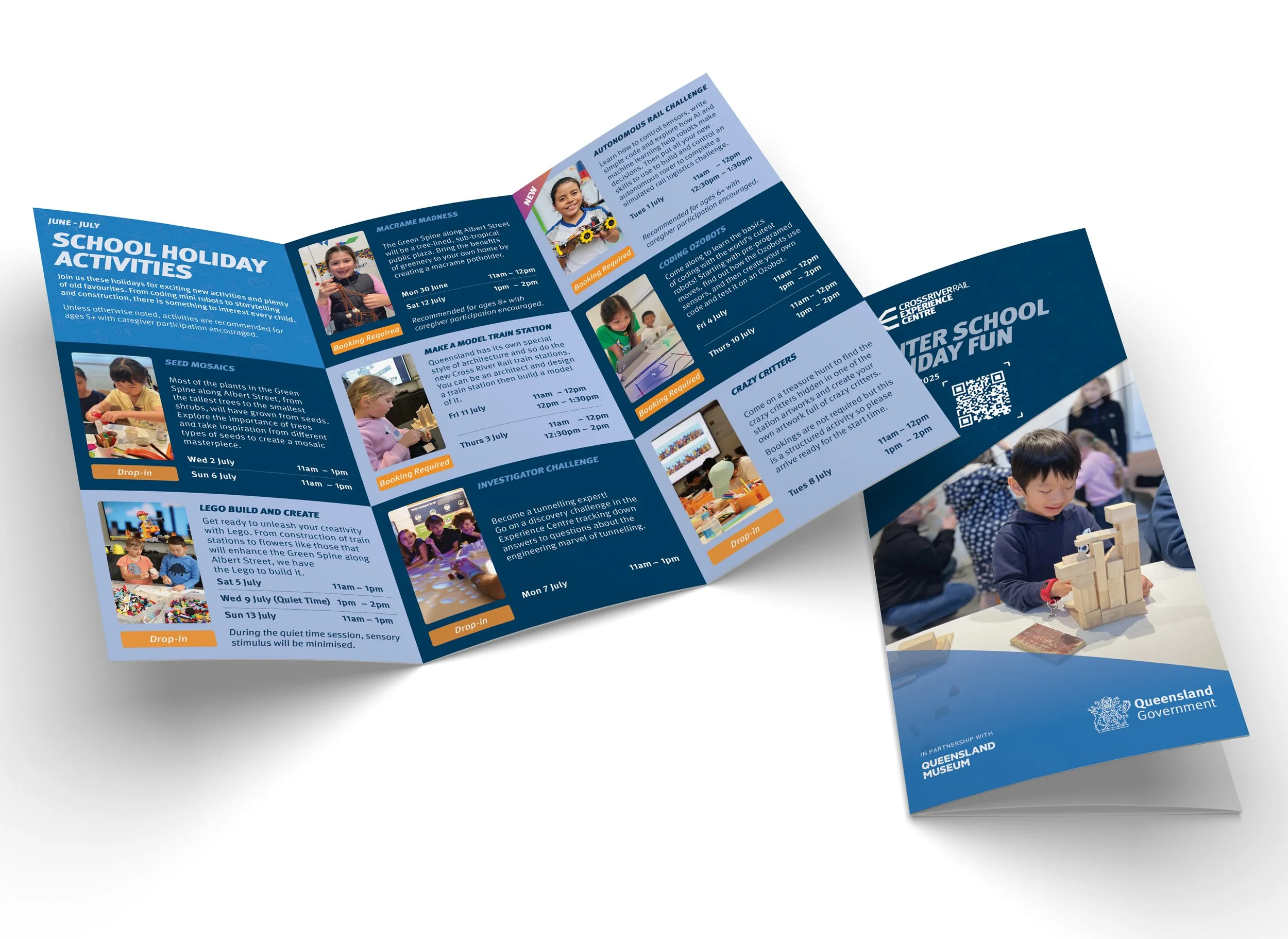 Printed media for Cross River Rail Delivery Authority Experience centre winter school activities.