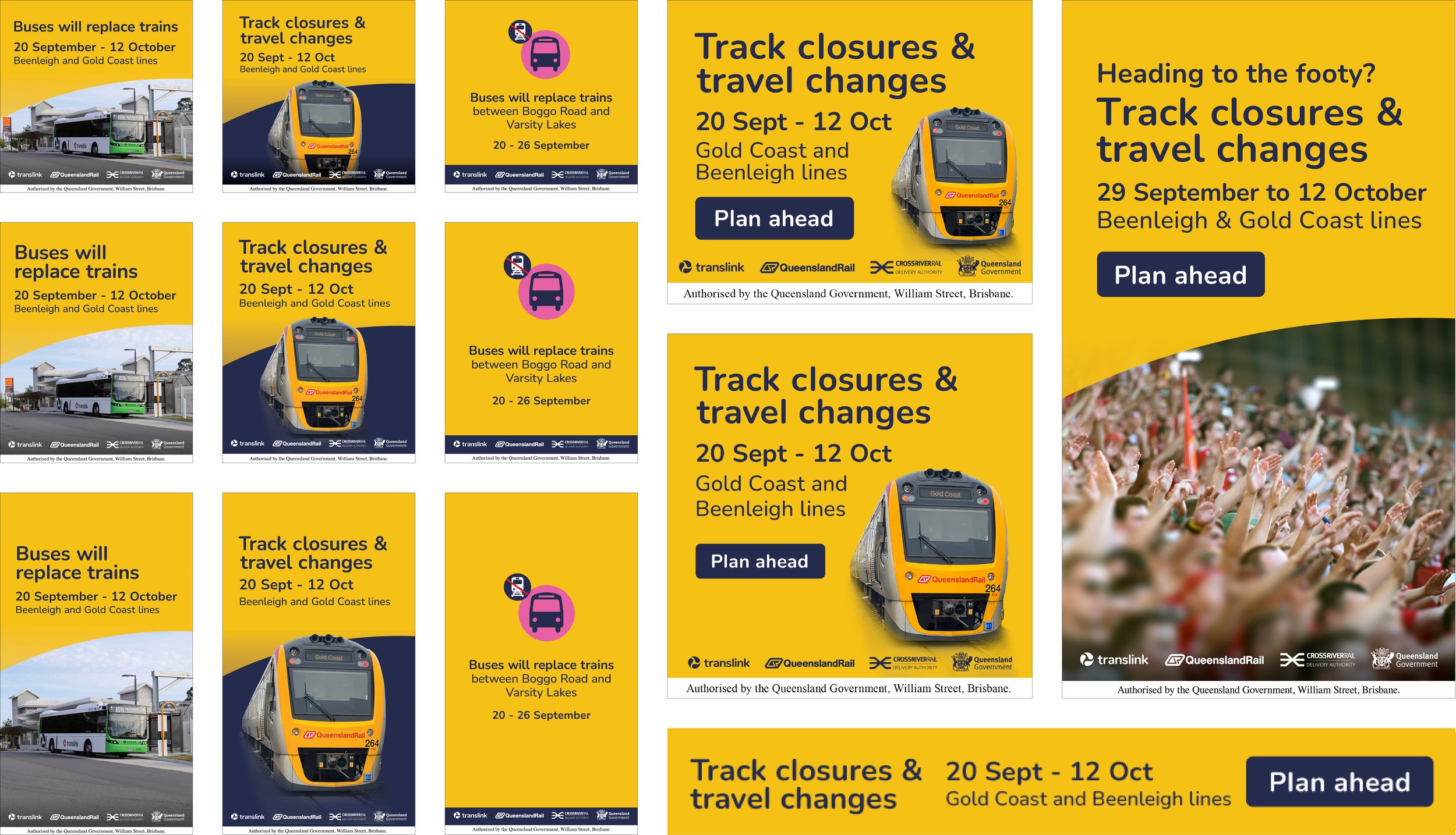 Here is a suite of social media awareness videos in the Cross River Rail Delivery Authority branding created for the September 2024 track closures.