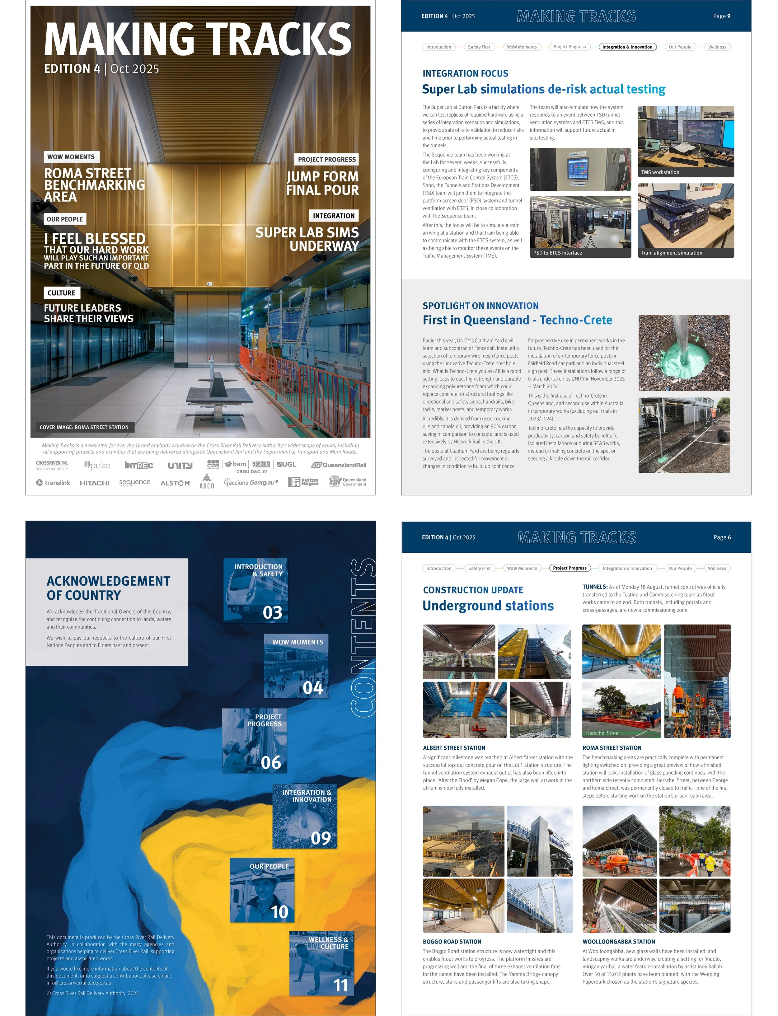 Cross River Rail is a new 10.2km rail line that includes 5.9km of twin tunnels running under the Brisbane River and CBD; with four new underground stations at Boggo Road, Woolloongabba, Albert Street and Roma Street.